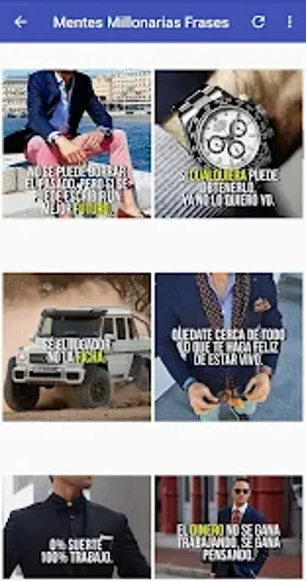 Mentes Millonarias is een gratis Android-applicatie die gebruikers inspireert met meer dan 100 motiverende citaten van succesvolle ondernemers. De applicatie is ontworpen voor eenvoudig gebruik en biedt een lichte navigatie door een galerij van inspirerende afbeeldingen. Gebruikers kunnen deze afbeeldingen instellen als achtergrond of delen met vrienden, wat bijdraagt aan de verspreiding van positieve financiële inzichten.